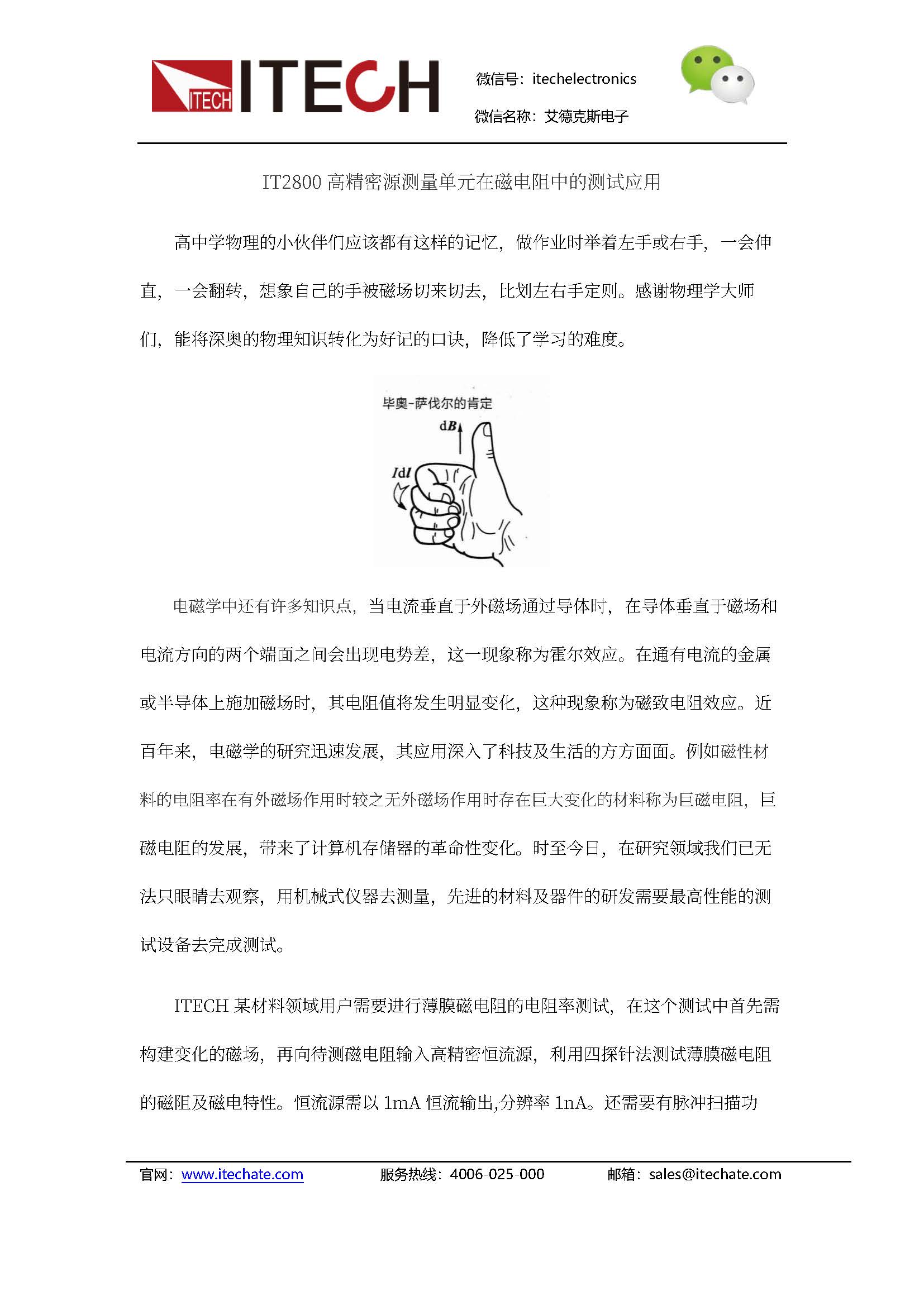 ITECH IT2800系列高精密源測量單元在磁電阻中的測試應用